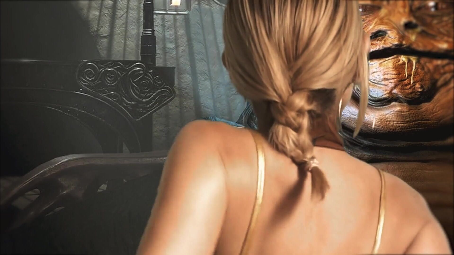 Star Wars Princess Leia dances oiled up for Jabba the Hutt, she sucks and rides his slippery cock