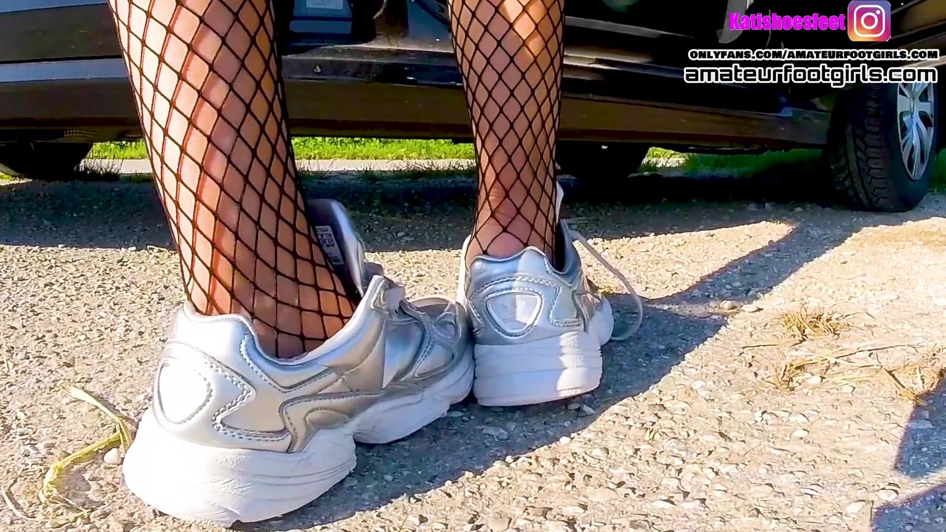 Kati shoeplay lick her shoes me sweaty fishnet tights, dipping sweaty insoles and stinky feet lick