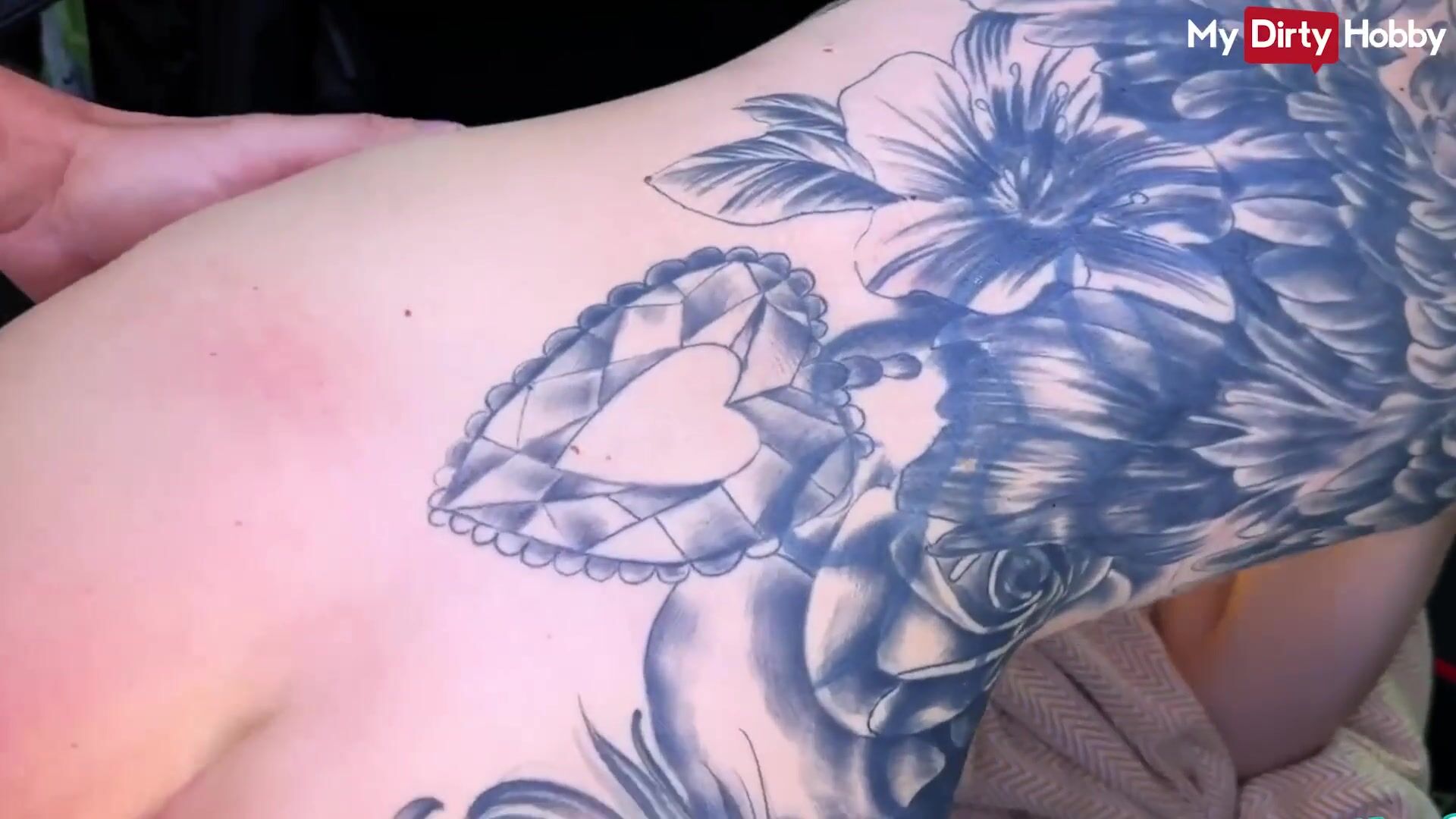 Tattooed amateur Lisa Sophie gets fucked in the back seat of a car - MyDirtyHobby