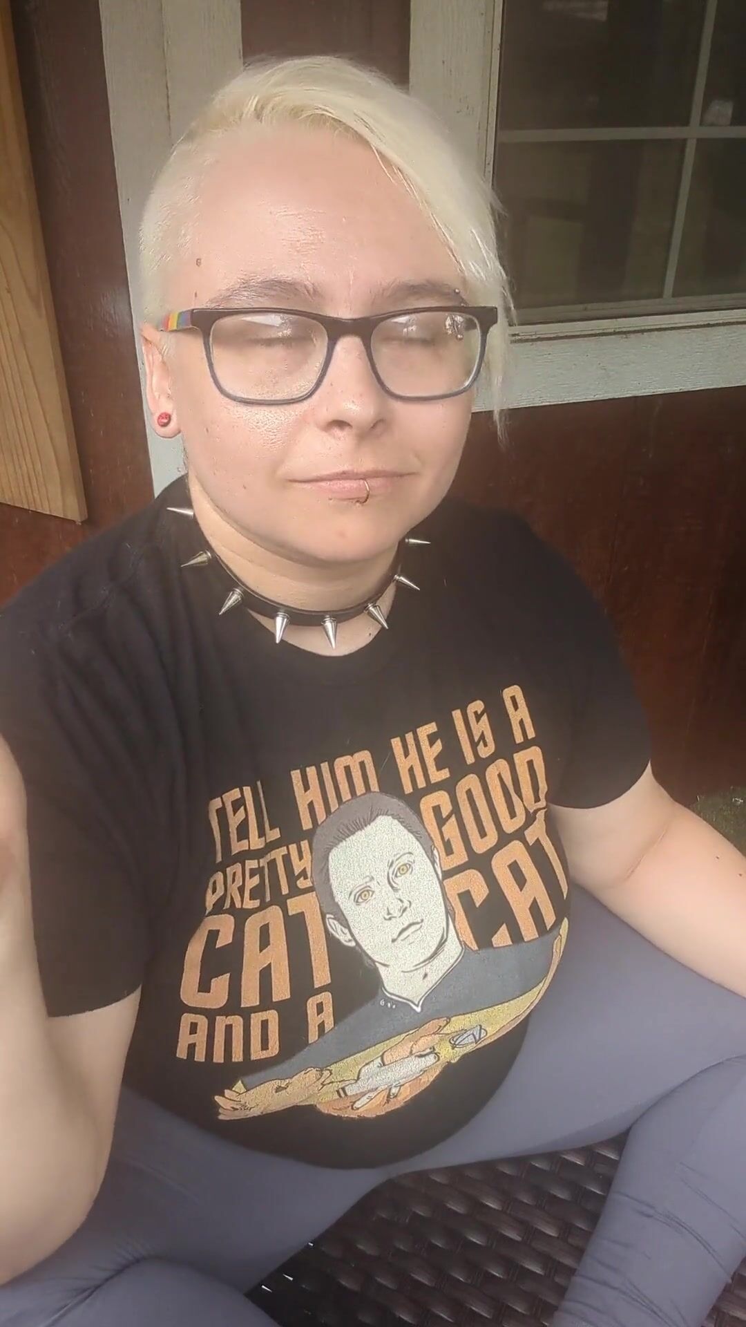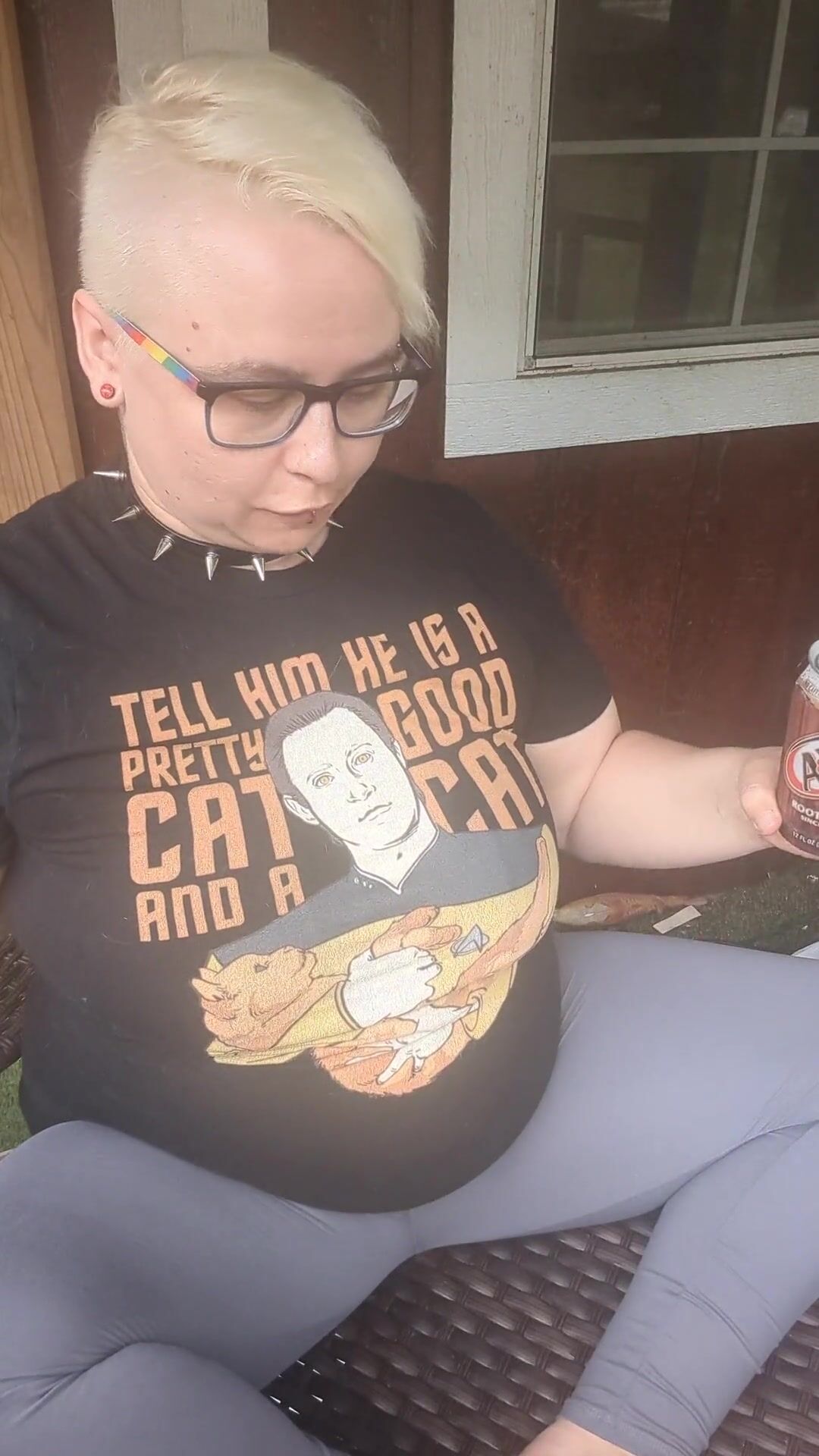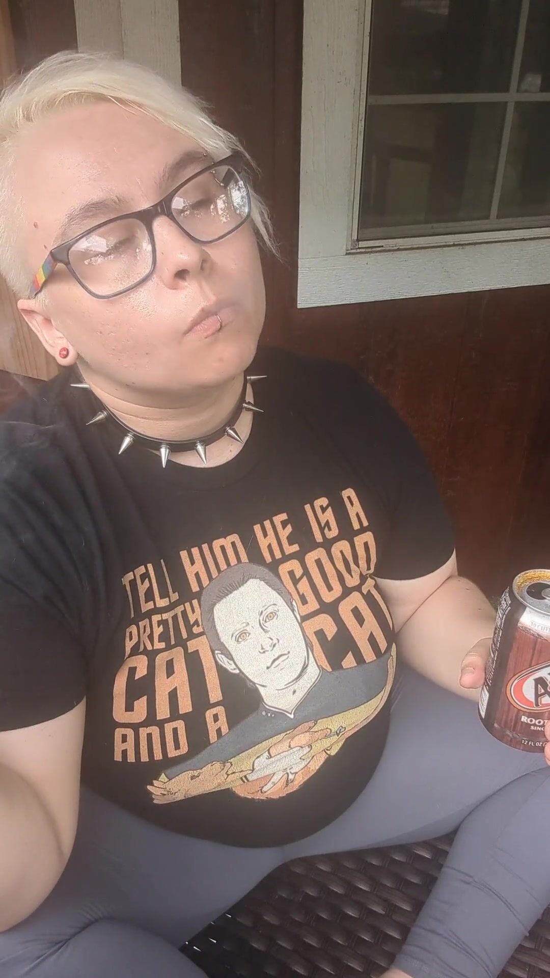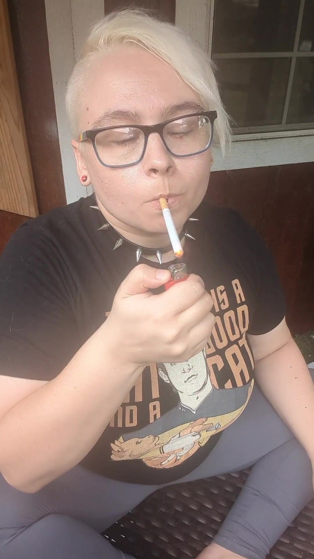 Nerdy Chubby Slut Smoking on Porch