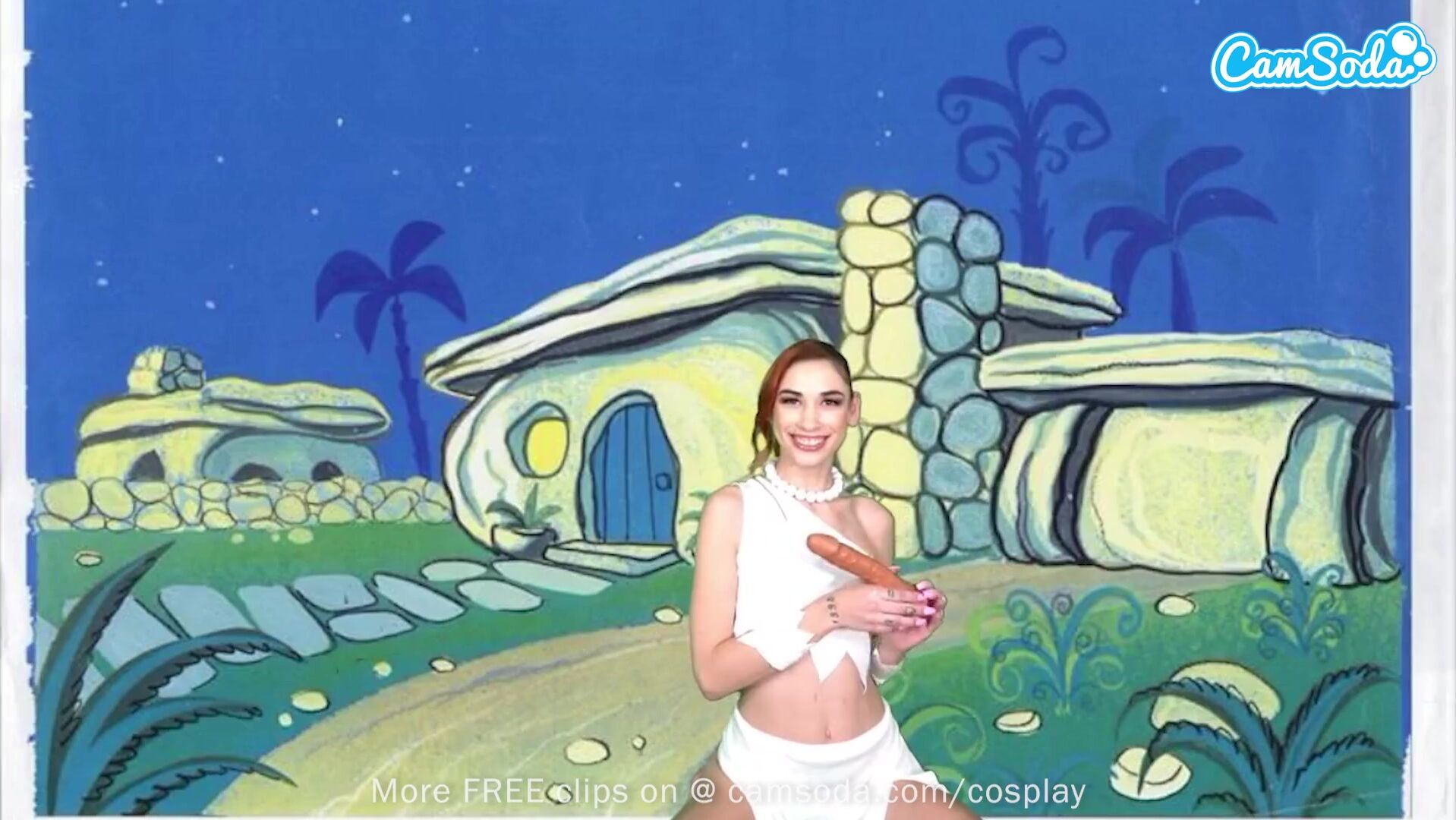Cute Teen Cosplay As Wilma Flintstone Masturbates And Sucks Huge Cock