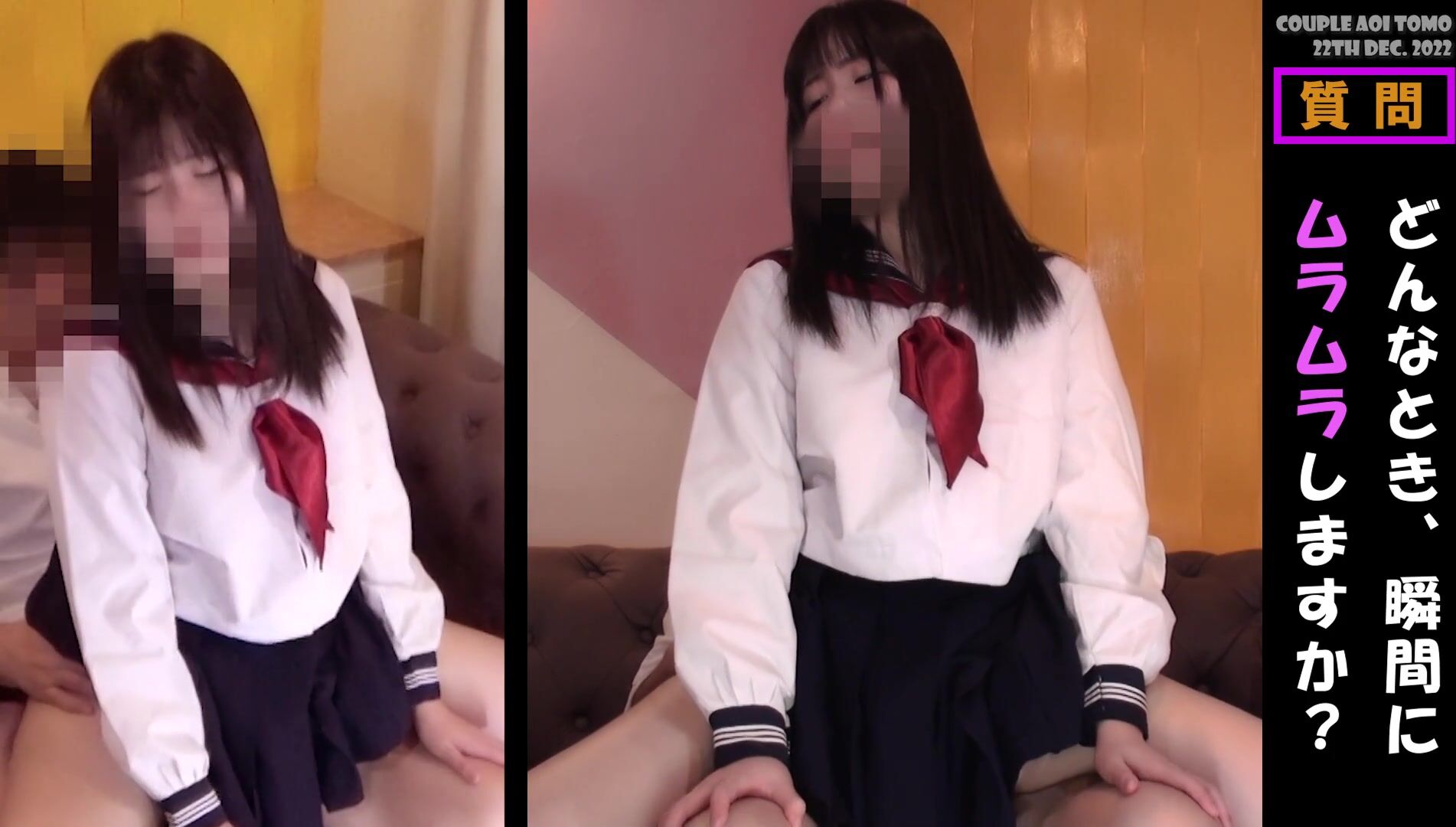 Japanese girl who answers questions while feeling pleasure