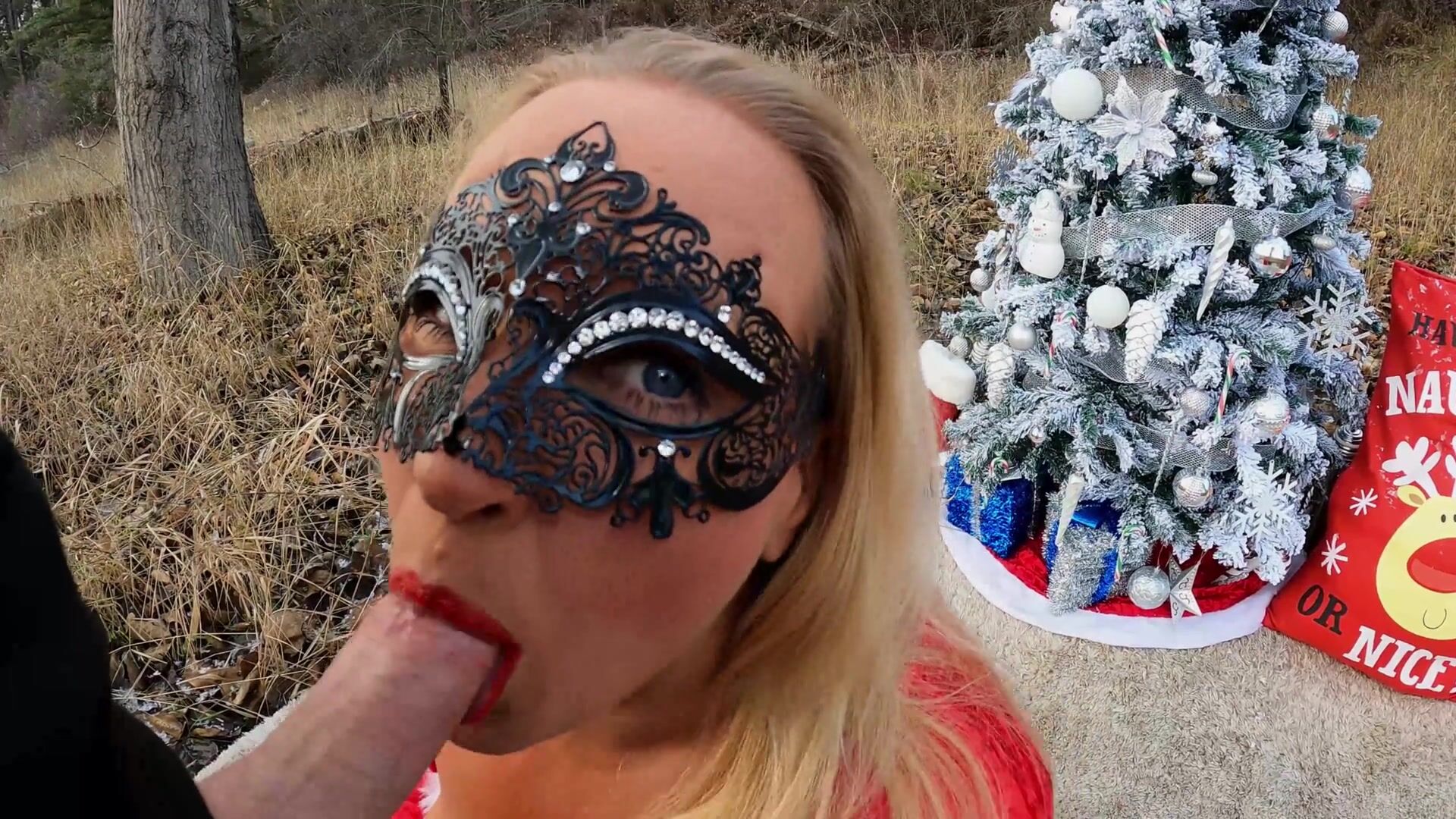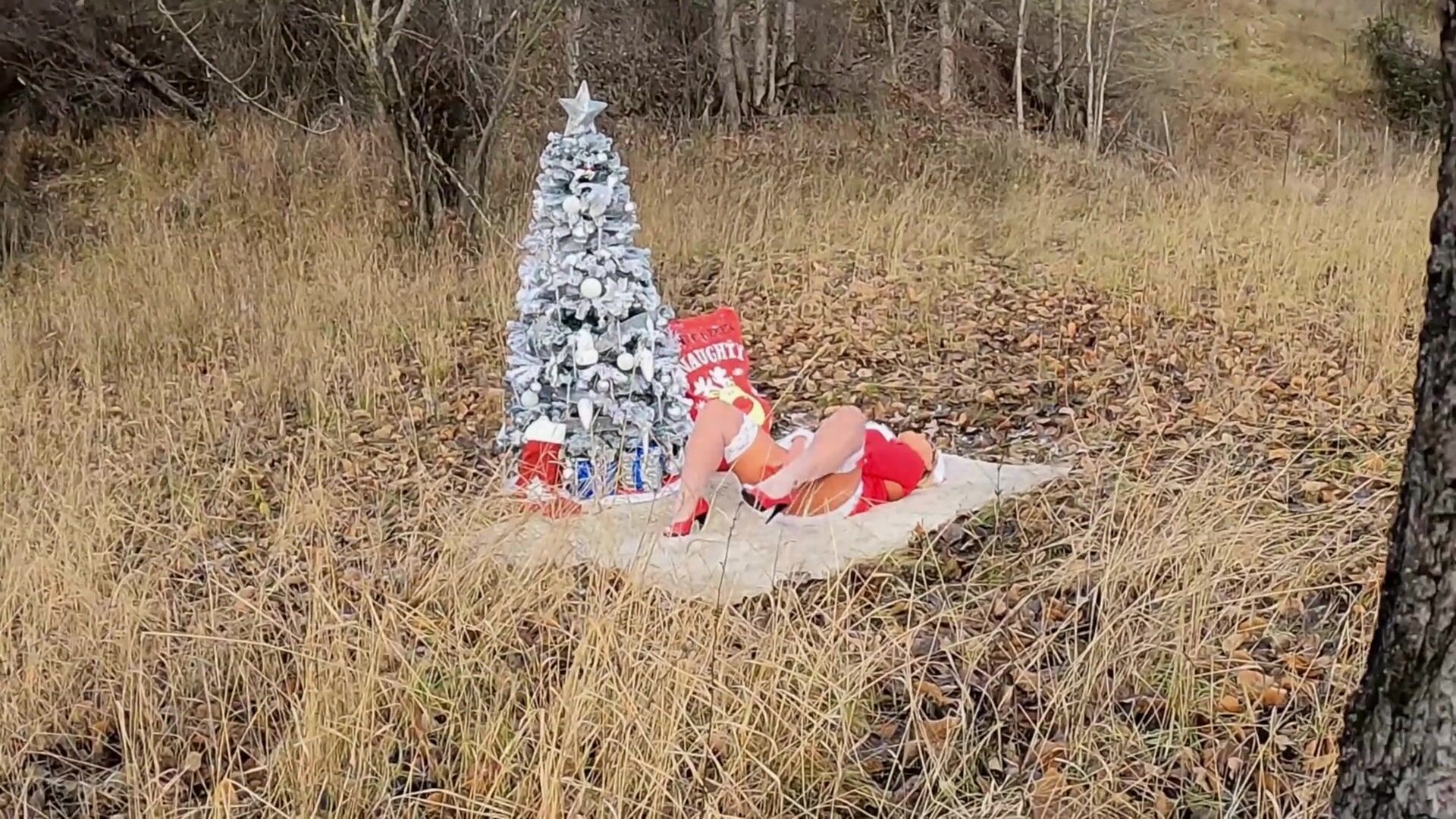 Hiker Spies on Horny Mrs. Claus while she MASTURBATES outdoors! He gets a HOLIDAY SURPRISE!