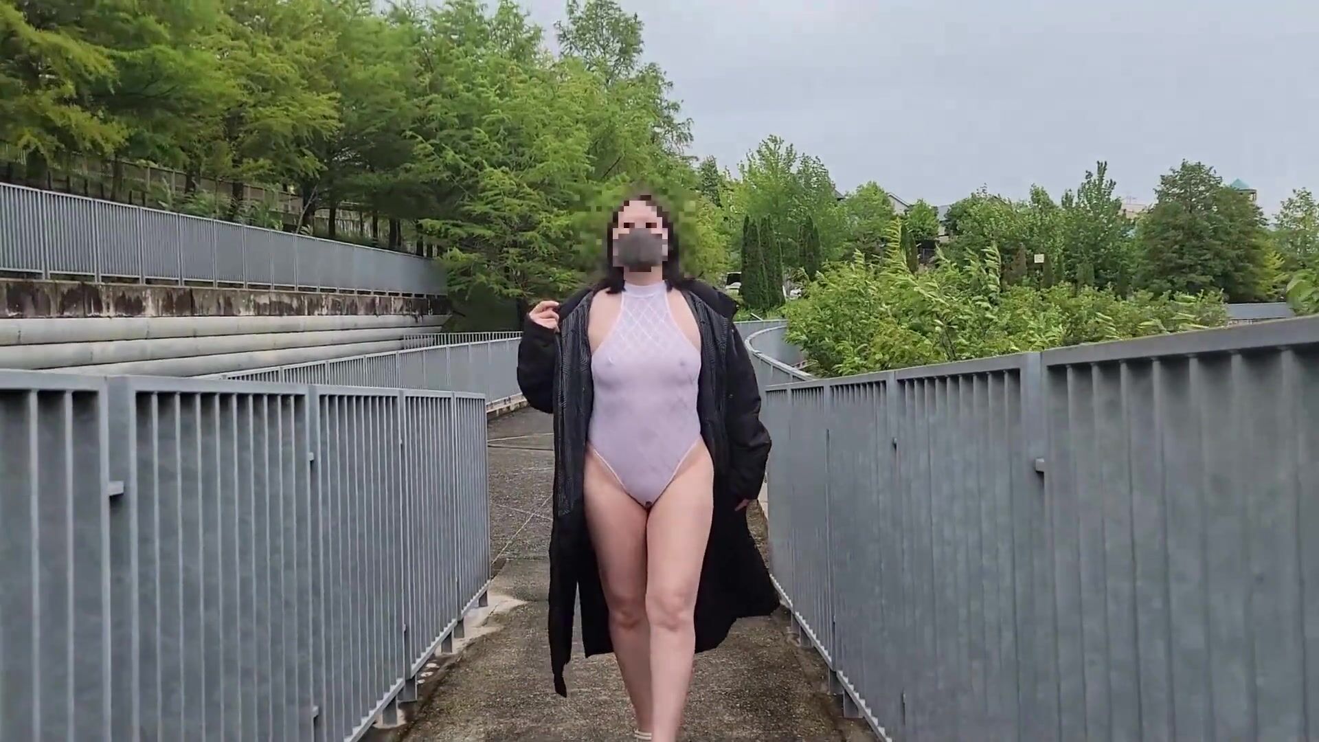 Exposed walk while looking for a masturbation place in the daytime park