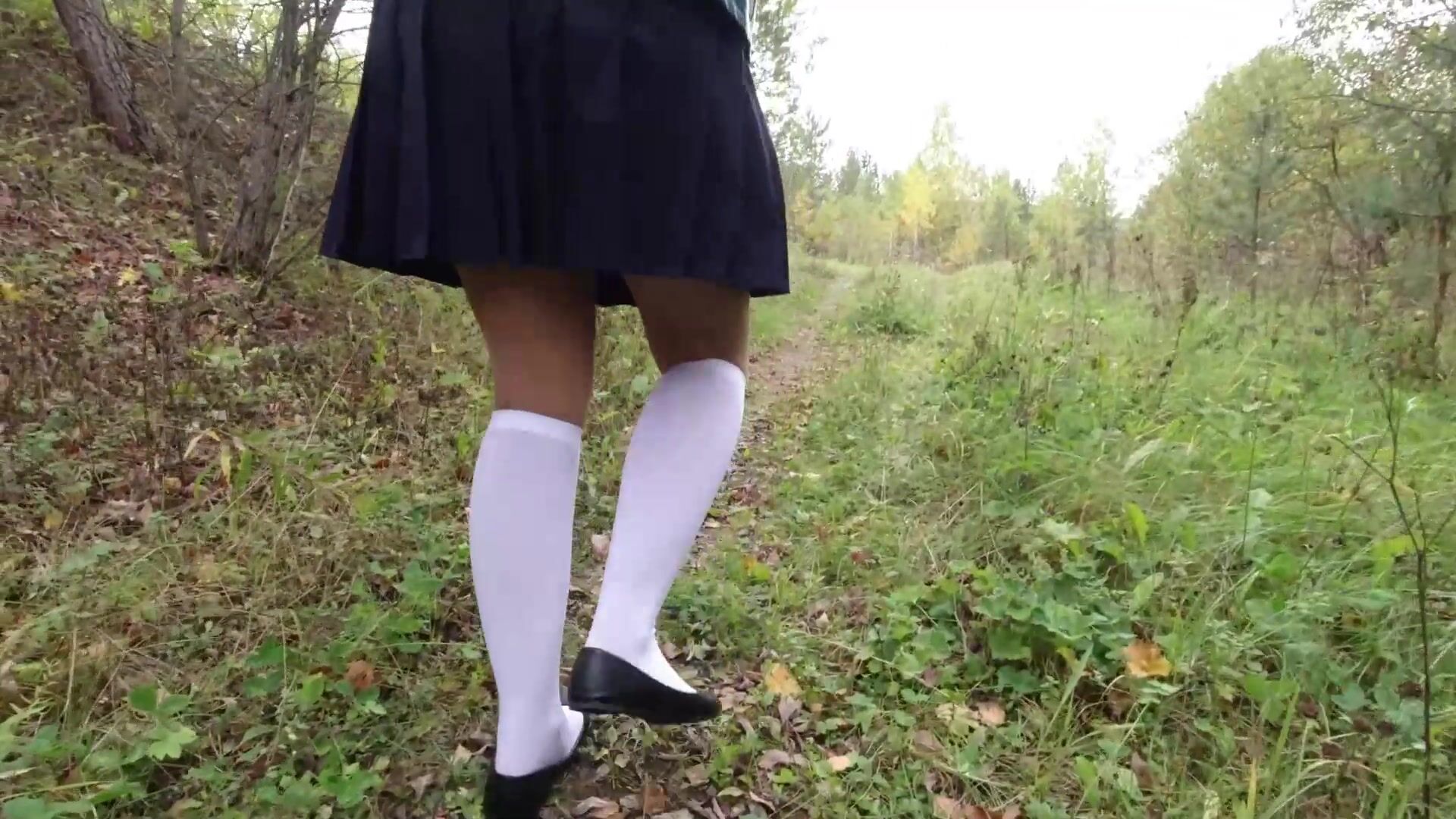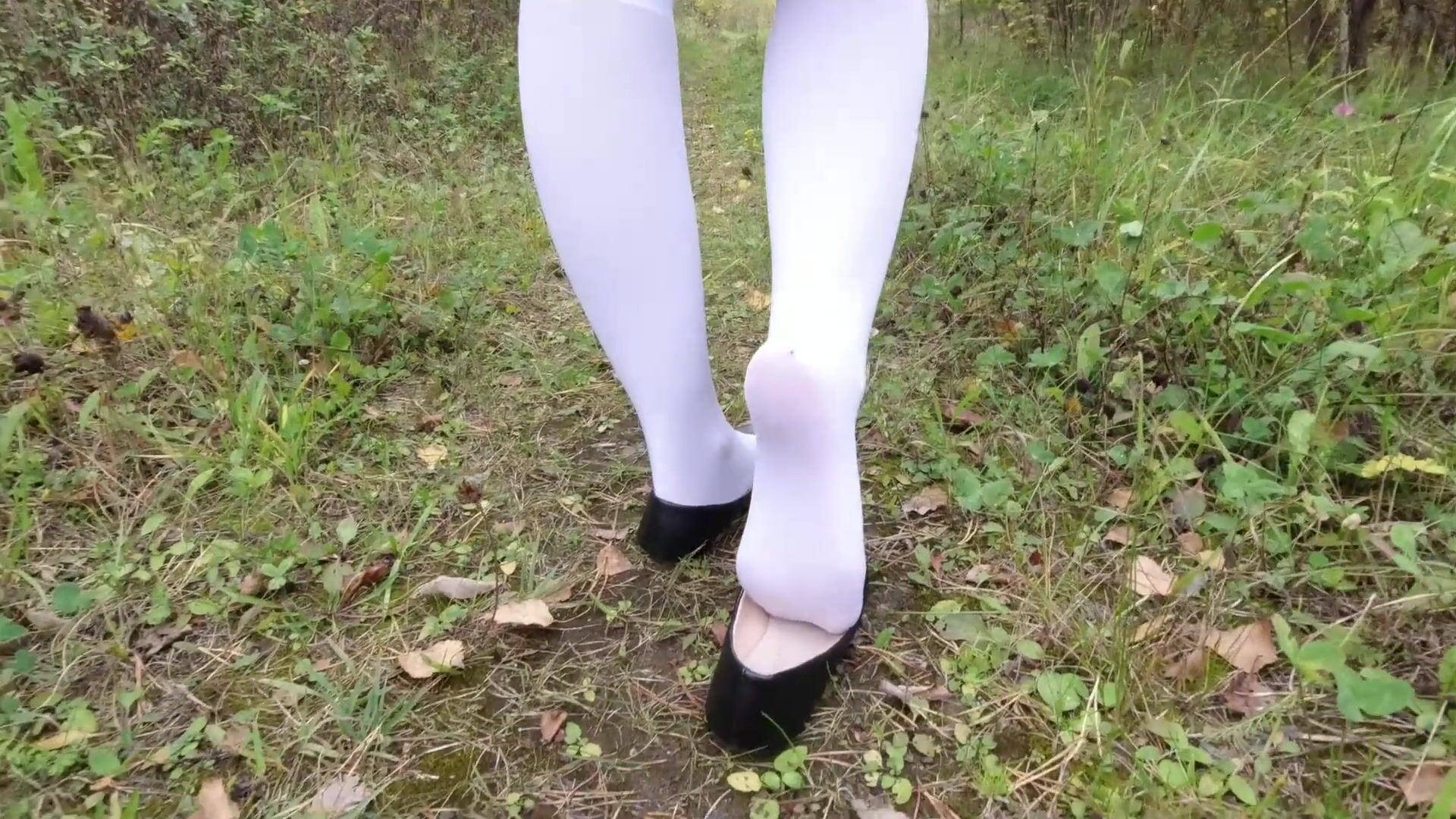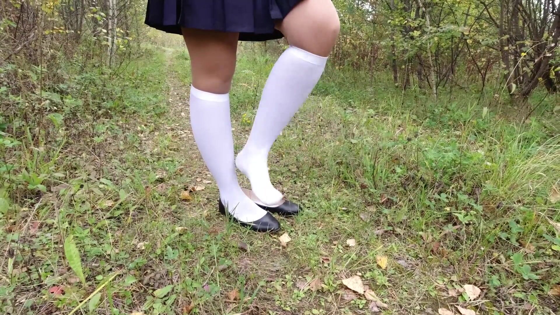 Fetish walk schoolgirl show feet in white knee socks